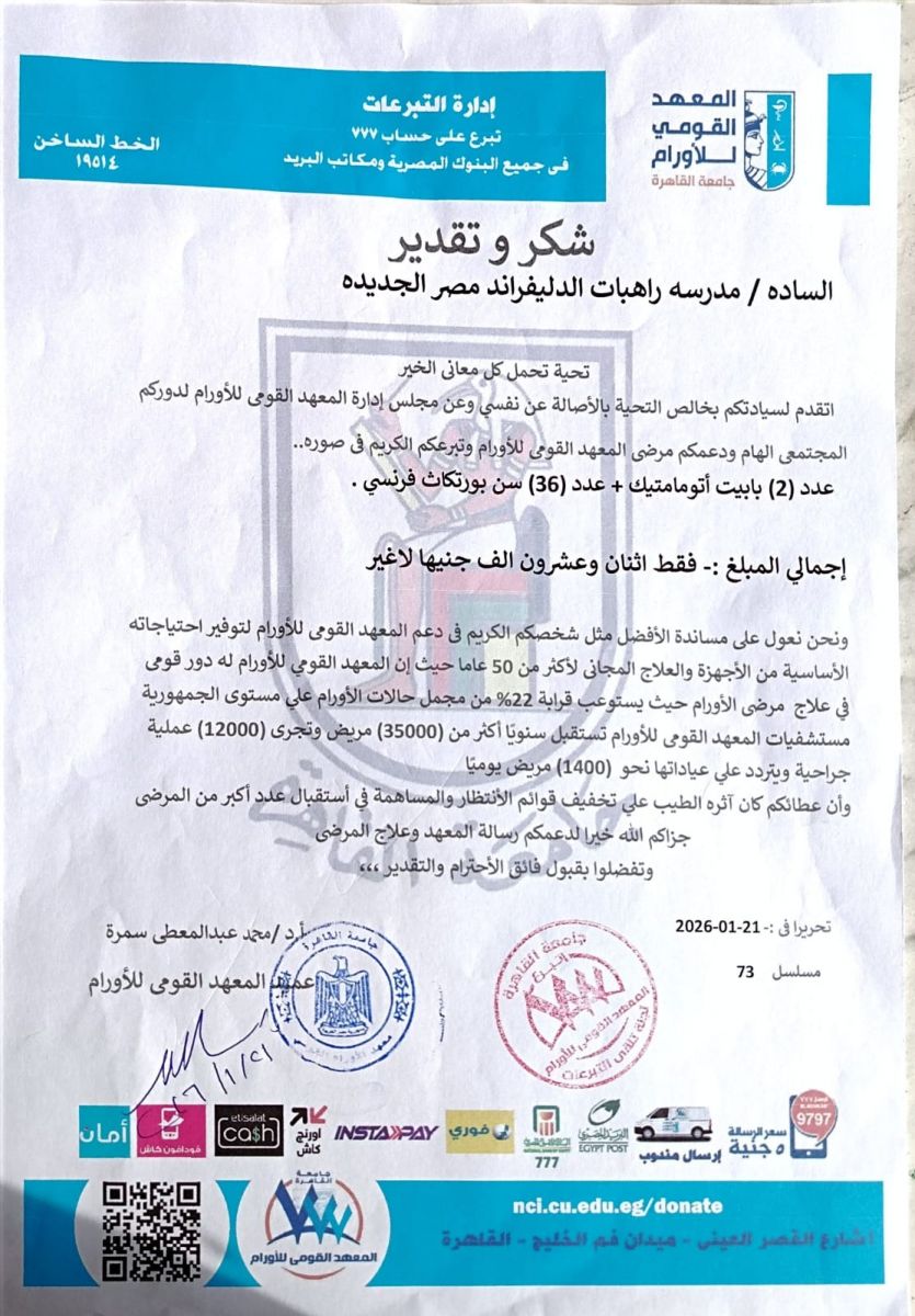 Donations à l'hopital de Dr.Magdi yacoub et l'nstitut national du cancer